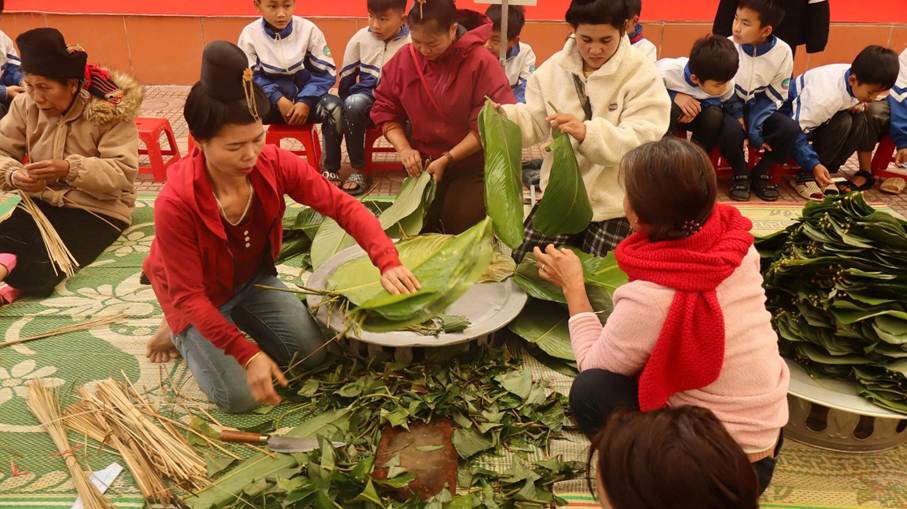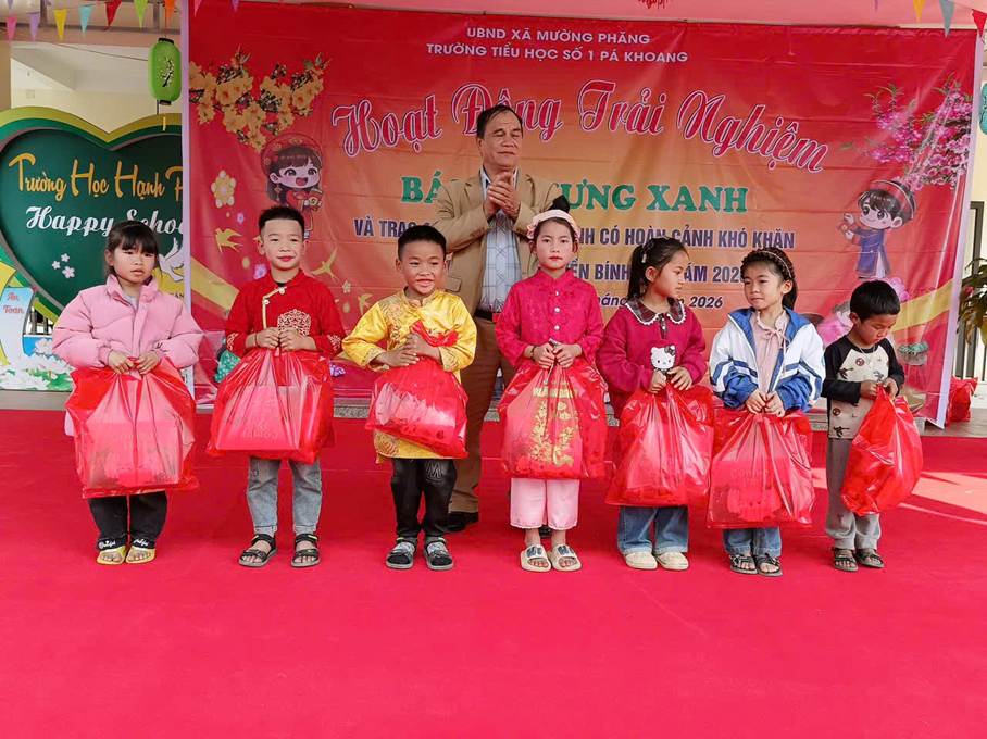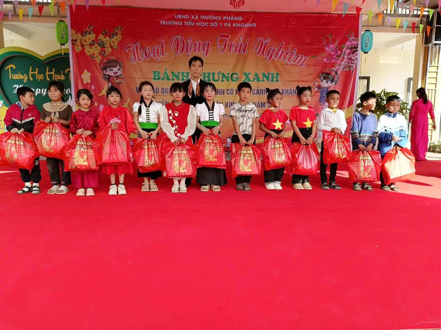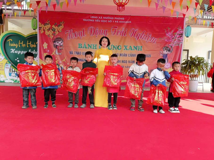 Hướng tới chào mừng Tết Nguyên đán Bính Ngọ 2026, ngày 1/2/2026, Trường TH số 1 Pá Khoang đã tổ chức Ngày hội gói bánh chưng xanh, chương trình là hoạt động ý nghĩa, góp phần giáo dục truyền thống, bồi đắp tình yêu thương và tinh thần đoàn kết cho học sinh toàn trường. Chương trình diễn ra trong không gian ngập tràn sắc xuân với nhiều hoạt động phong phú và thiết thực như: văn nghệ chào xuân, trải nghiệm gói bánh chưng xanh truyền thống, trao quà Tết cho học sinh có hoàn cảnh khó khăn; thầy cô-học sinh và phụ huynh cùng hòa mình vào điệu xòe, nhảy sạp góp phần cho ngày hội sôi động hơn và đặc biệt nhằm bảo tồn bản sắc văn hóa dân tộc Tây Bắc. Tại ngày hội, các em học sinh được tìm hiểu nguồn gốc, ý nghĩa của bánh chưng trong Tết cổ truyền dân tộc, đồng thời trực tiếp tham gia gói bánh cùng thầy cô, cha mẹ. Từ những nguyên liệu quen thuộc như gạo nếp, đỗ xanh, thịt lợn, lá dong, … do các lớp chuẩn bị, dưới sự hướng dẫn tận tình của thầy cô giáo và phụ huynh, các em học sinh được trực tiếp trải nghiệm từng công đoạn để hoàn thiện những chiếc bánh gù mang đậm bản sắc văn hóa dân tộc. Dù những chiếc bánh còn chưa thật hoàn hảo, nhưng đó chính là thành quả đáng quý từ sự trải nghiệm, cố gắng và niềm say mê của các em. Không chỉ là hoạt động trải nghiệm văn hóa, ngày hội còn mang đậm ý nghĩa nhân văn. Những phần quà tết ấm áp đã được nhà trường trao tặng cho các em học sinh có hoàn cảnh khó khăn. Những món quà tuy giản dị nhưng chứa đựng tình cảm yêu thương, sự quan tâm và động viên kịp thời, góp phần mang đến một mùa xuân đủ đầy, ấm áp hơn cho các thầy cô và học sinh.