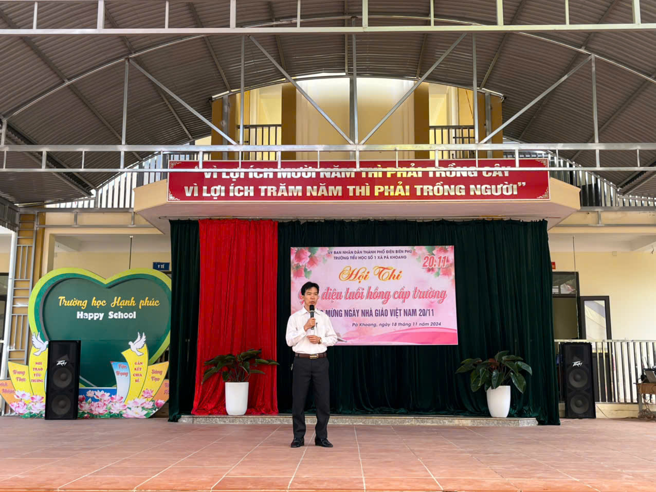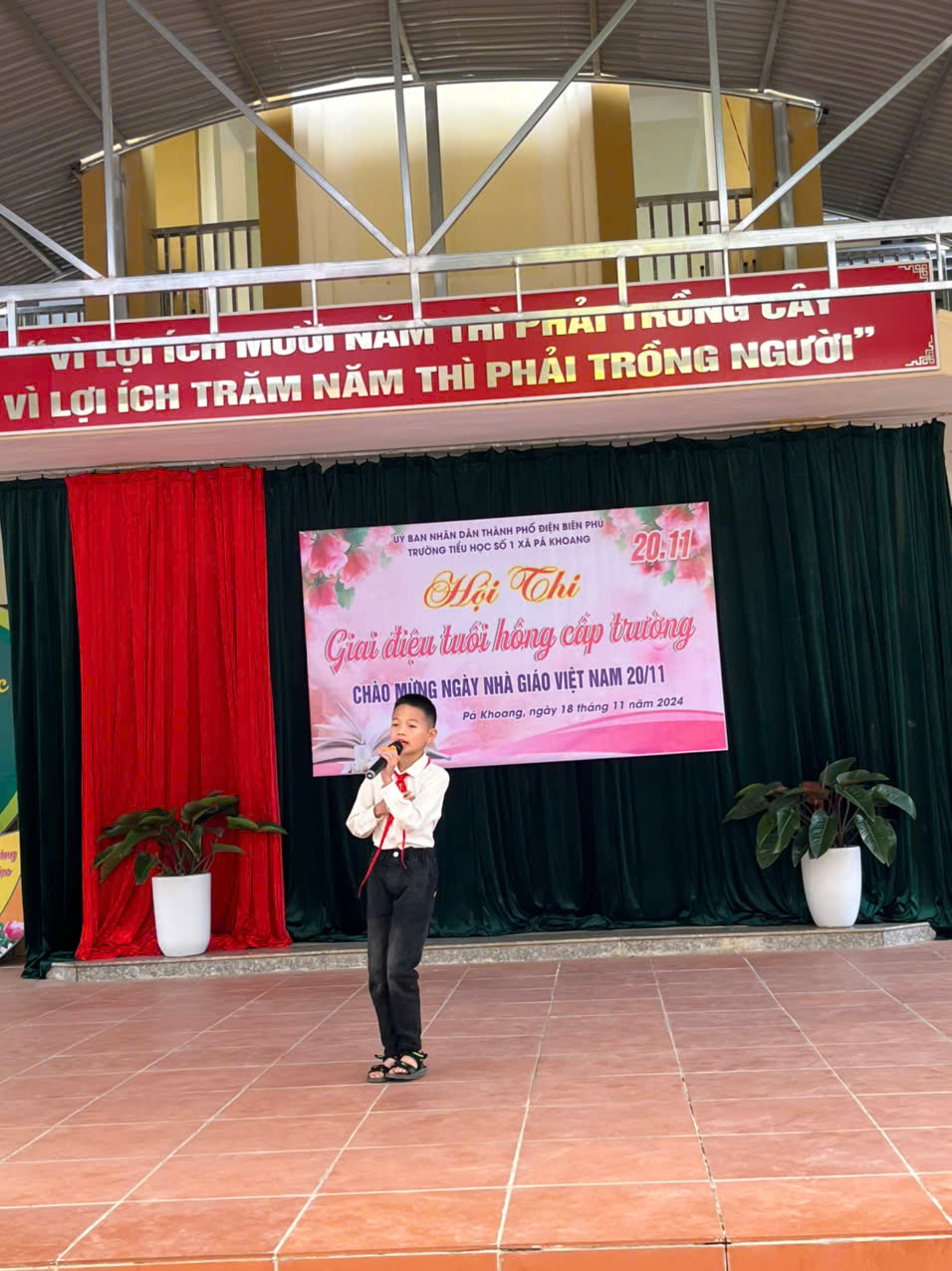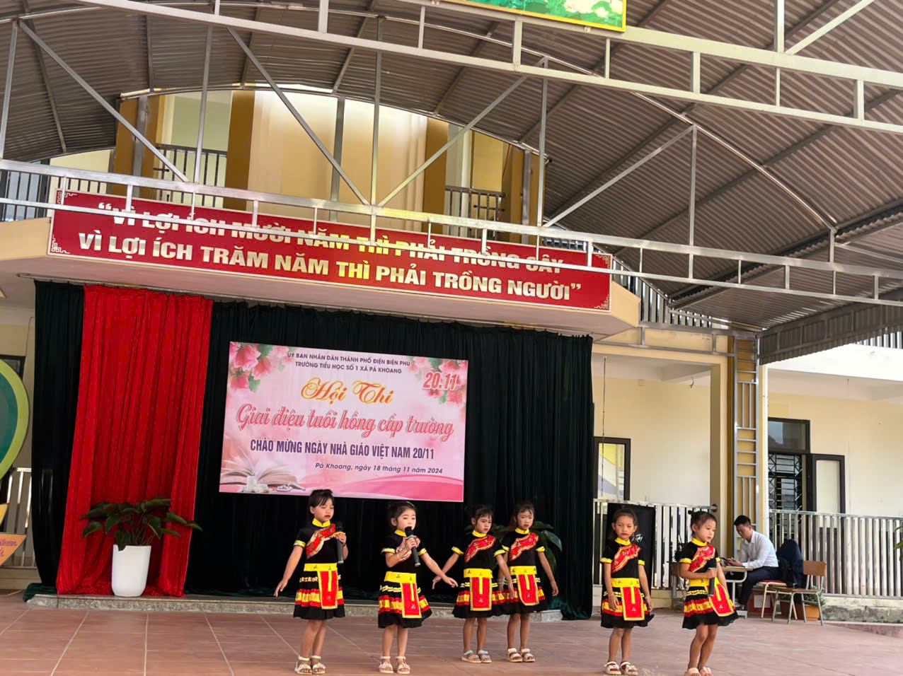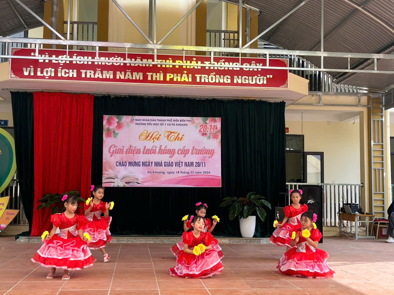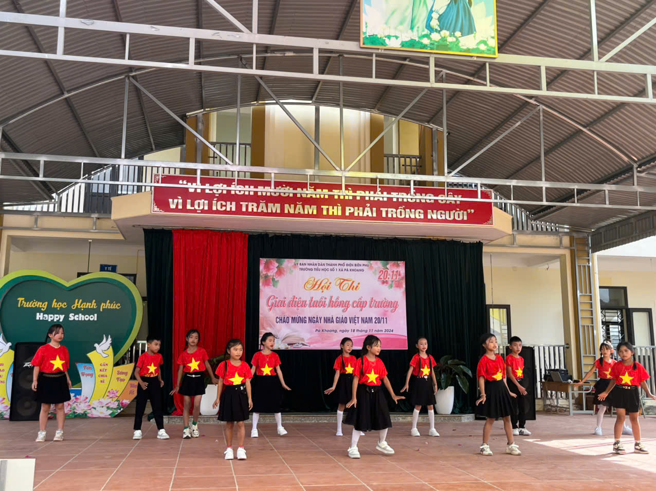 Trường tiểu học số 1 xã Pá khoang tổ chức Hội thi "Giai điệu tuổi Hồng" cấp trường Chào mừng 42 năm ngày Nhà giáo Việt Nam 20/11/1982 – 20/11/2024. Trong không khí hân hoan cả nước hướng về ngày Nhà giáo Việt Nam 20/11, để tỏ lòng tri ân, biết ơn đến công lao to lớn của người thầy, người cô đã, đang và sẽ tiếp tục ươm những mầm non tương lai của đất nước được bay cao, bay xa và thành đạt trên đường đời rộng mở. Sáng ngày 18/11/ 2024. Trường Tiểu học số 1 xã Pá Khoang thành phố Điện Biên Phủ đã tổ chức hội thi “Giai điệu tuổi Hồng” cấp trường chào mừng 42 năm ngày Nhà giáo Việt Nam 20/11/1982 – 20/11/2024. Hội thi đã đem đến lời ca tiếng hát của 10/10 lớp. Mỗi lớp tham gia 3 tiết mục (01 đơn ca, 01 tốp ca, 01 múa, nhảy) mỗi lời ca điệu múa là tình cảm thân thương mà các em học sinh dành cho các thầy các cô. Đây cũng là sân chơi bổ ích cho toàn thể học sinh nhà trường, qua đó giáo dục truyền thống tốt đẹp cho học sinh. Thông qua hội thi tìm kiếm những giọng hát hay, bài múa đẹp từ học sinh để tạo nguồn lực cho các đội văn nghệ xung kích nhà trường. Trước khi vào phần dự thi của các lớp thầy Phùng Hồng Nam – Bí thư chi bộ - Hiệu trưởng nhà trường đã phát biểu khai mạc và chúc các đội thi hoàn thành thật tốt phần thi của mình, ban giám khảo làm việc công tâm, khách quan. Kết thúc hội thi nhà trường trao 03 giải nhất, 06 giải nhì, 06 giải ba và 10 giải khuyến khích cho các lớp. MỘT SỐ HÌNH ẢNH CỦA HỘI THI GIAI ĐIỆU TUỔI HỒNG