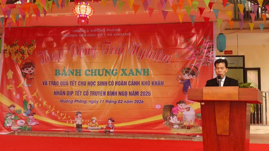 Hướng tới chào mừng Tết Nguyên đán Bính Ngọ 2026, ngày 1/2/2026, Trường TH số 1 Pá Khoang đã tổ chức Ngày hội gói bánh chưng xanh, chương trình là hoạt động ý nghĩa, góp phần giáo dục truyền thống, bồi đắp tình yêu thương và tinh thần đoàn kết cho học sinh toàn trường. Chương trình diễn ra trong không gian ngập tràn sắc xuân với nhiều hoạt động phong phú và thiết thực như: văn nghệ chào xuân, trải nghiệm gói bánh chưng xanh truyền thống, trao quà Tết cho học sinh có hoàn cảnh khó khăn; thầy cô-học sinh và phụ huynh cùng hòa mình vào điệu xòe, nhảy sạp góp phần cho ngày hội sôi động hơn và đặc biệt nhằm bảo tồn bản sắc văn hóa dân tộc Tây Bắc. Tại ngày hội, các em học sinh được tìm hiểu nguồn gốc, ý nghĩa của bánh chưng trong Tết cổ truyền dân tộc, đồng thời trực tiếp tham gia gói bánh cùng thầy cô, cha mẹ. Từ những nguyên liệu quen thuộc như gạo nếp, đỗ xanh, thịt lợn, lá dong, … do các lớp chuẩn bị, dưới sự hướng dẫn tận tình của thầy cô giáo và phụ huynh, các em học sinh được trực tiếp trải nghiệm từng công đoạn để hoàn thiện những chiếc bánh gù mang đậm bản sắc văn hóa dân tộc. Dù những chiếc bánh còn chưa thật hoàn hảo, nhưng đó chính là thành quả đáng quý từ sự trải nghiệm, cố gắng và niềm say mê của các em. Không chỉ là hoạt động trải nghiệm văn hóa, ngày hội còn mang đậm ý nghĩa nhân văn. Những phần quà tết ấm áp đã được nhà trường trao tặng cho các em học sinh có hoàn cảnh khó khăn. Những món quà tuy giản dị nhưng chứa đựng tình cảm yêu thương, sự quan tâm và động viên kịp thời, góp phần mang đến một mùa xuân đủ đầy, ấm áp hơn cho các thầy cô và học sinh.