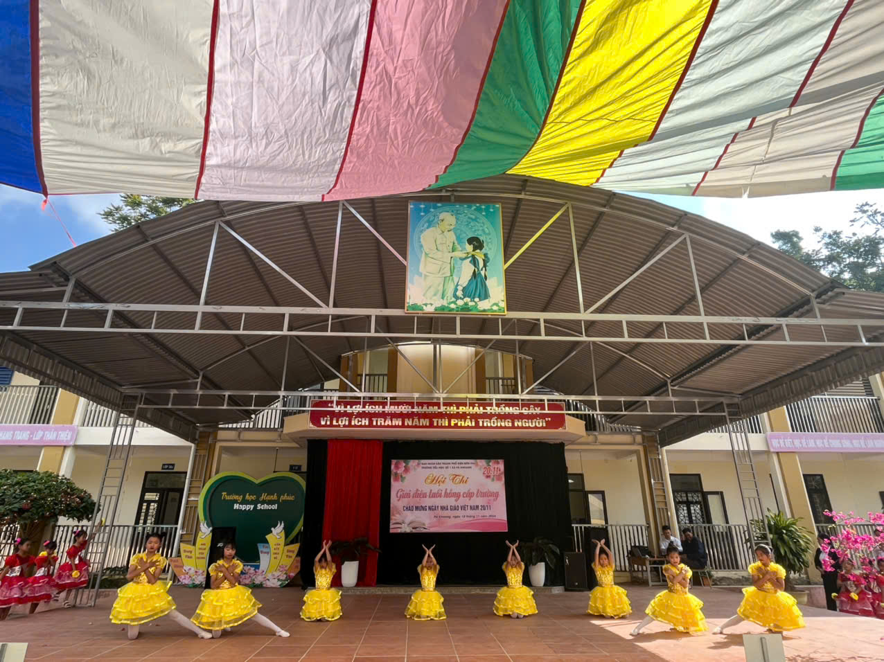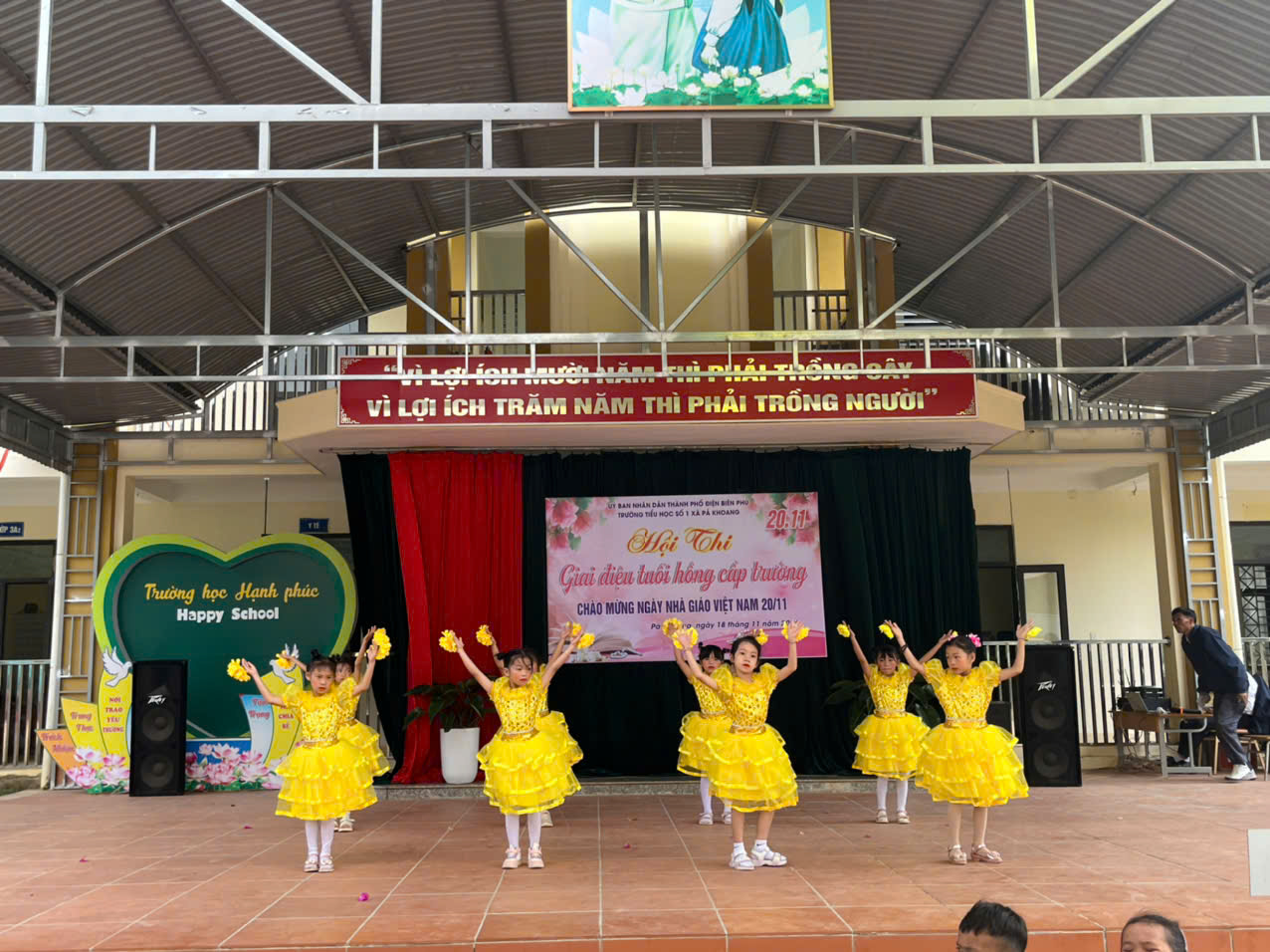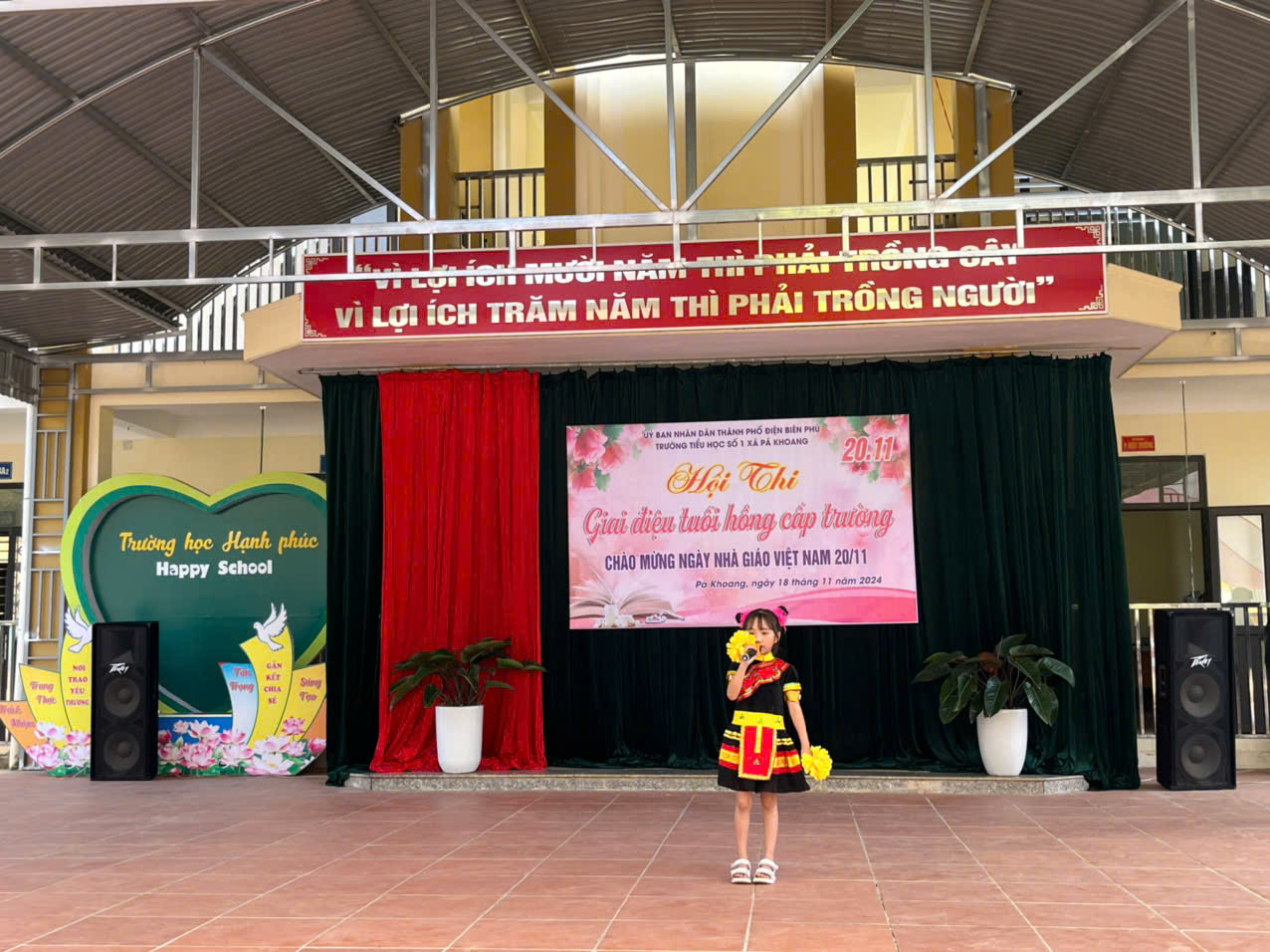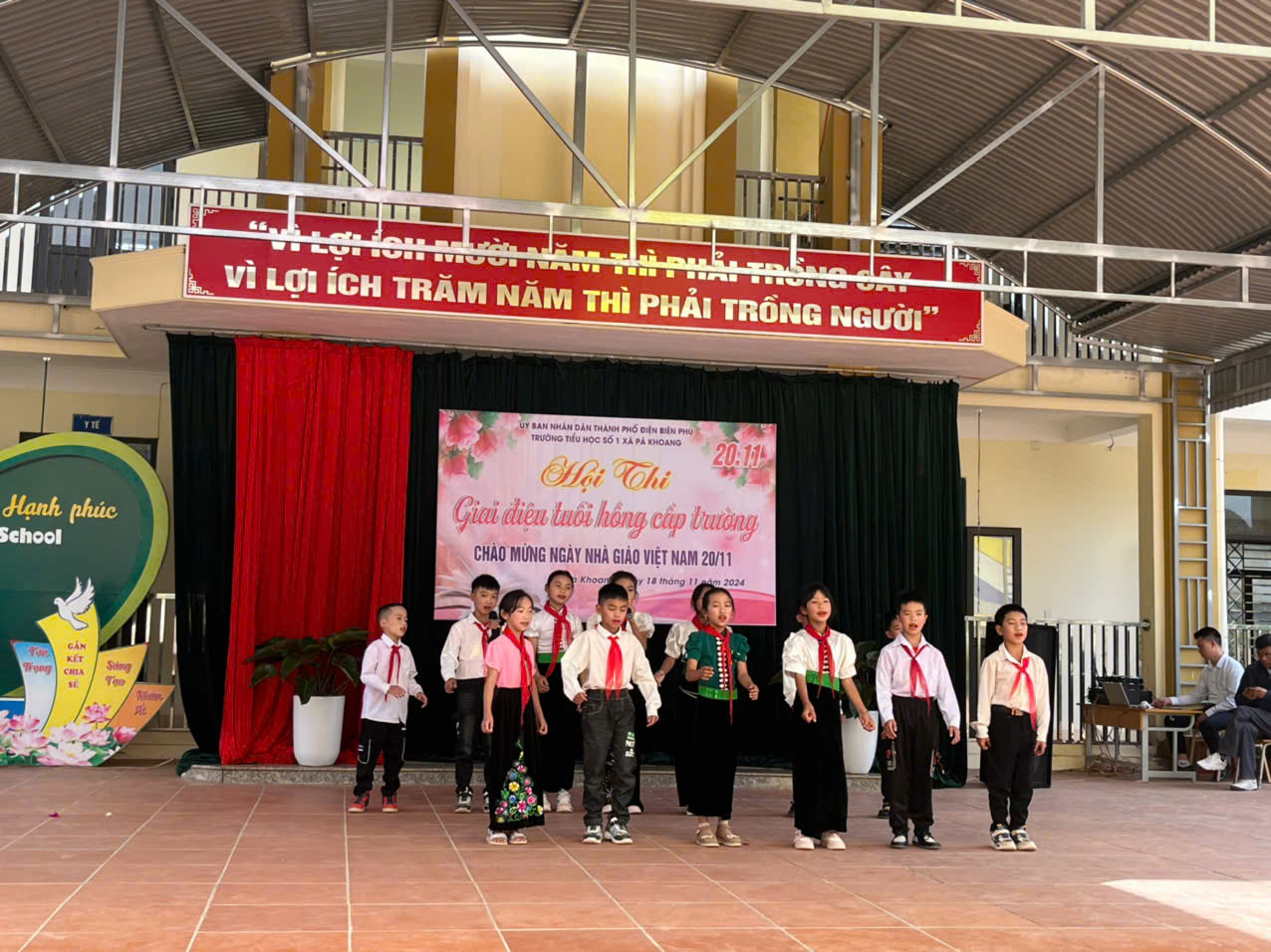 Trường tiểu học số 1 xã Pá khoang tổ chức Hội thi "Giai điệu tuổi Hồng" cấp trường Chào mừng 42 năm ngày Nhà giáo Việt Nam 20/11/1982 – 20/11/2024. Trong không khí hân hoan cả nước hướng về ngày Nhà giáo Việt Nam 20/11, để tỏ lòng tri ân, biết ơn đến công lao to lớn của người thầy, người cô đã, đang và sẽ tiếp tục ươm những mầm non tương lai của đất nước được bay cao, bay xa và thành đạt trên đường đời rộng mở. Sáng ngày 18/11/ 2024. Trường Tiểu học số 1 xã Pá Khoang thành phố Điện Biên Phủ đã tổ chức hội thi “Giai điệu tuổi Hồng” cấp trường chào mừng 42 năm ngày Nhà giáo Việt Nam 20/11/1982 – 20/11/2024. Hội thi đã đem đến lời ca tiếng hát của 10/10 lớp. Mỗi lớp tham gia 3 tiết mục (01 đơn ca, 01 tốp ca, 01 múa, nhảy) mỗi lời ca điệu múa là tình cảm thân thương mà các em học sinh dành cho các thầy các cô. Đây cũng là sân chơi bổ ích cho toàn thể học sinh nhà trường, qua đó giáo dục truyền thống tốt đẹp cho học sinh. Thông qua hội thi tìm kiếm những giọng hát hay, bài múa đẹp từ học sinh để tạo nguồn lực cho các đội văn nghệ xung kích nhà trường. Trước khi vào phần dự thi của các lớp thầy Phùng Hồng Nam – Bí thư chi bộ - Hiệu trưởng nhà trường đã phát biểu khai mạc và chúc các đội thi hoàn thành thật tốt phần thi của mình, ban giám khảo làm việc công tâm, khách quan. Kết thúc hội thi nhà trường trao 03 giải nhất, 06 giải nhì, 06 giải ba và 10 giải khuyến khích cho các lớp. MỘT SỐ HÌNH ẢNH CỦA HỘI THI GIAI ĐIỆU TUỔI HỒNG